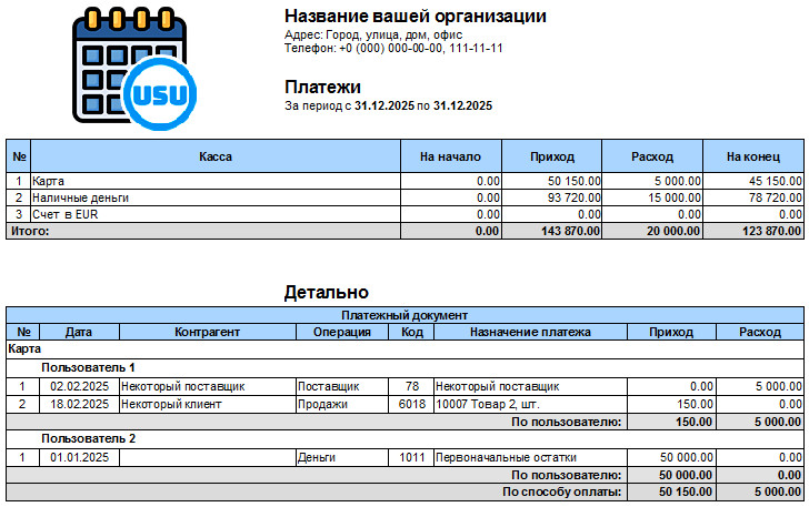 Давайте теперь подробно разберем, как данный финансовый анализ образовательного учреждения выглядит в CRM системе УСУ. Отчет по платежам делится на 2 основные части: общая и детальная.