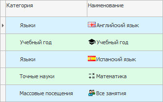 Например, уроку английского языка можно присвоить иконку с флагом, занятию по музыке — изображение ноты или инструмента, уроку танцев — силуэт танцующей пары и т.д.