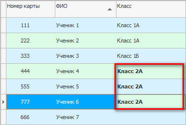 Первая и самая простая - это выделение одинаковых значений. Все очень просто! Допустим, вам нужно видеть учеников класса «2А» класса - просто нажмите на название и жирным шрифтом будут подсвечены все ученики именно этого класса.