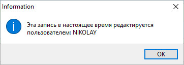 Программа отобразит сообщение: «Текущая запись редактируется другим сотрудником. Дождитесь завершения редактирования.»