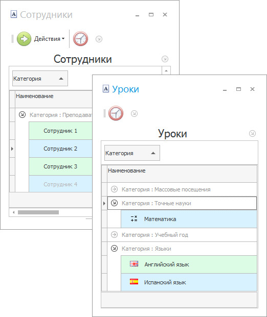 При входе в CRM для учебного центра мы сразу видим несколько окон для работы, главным из которых является расписание. Такой интерфейс называется «многооконный». Он способен обеспечить доступ сразу к нескольким видам информации одновременно, что повышает скорость работы в режиме многозадачности. Это очень помогает, когда нужно обработать большой объем информации, не закрывая при этом предыдущее окно, чтобы поработать в другом.