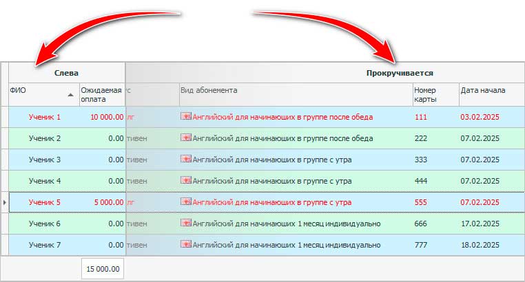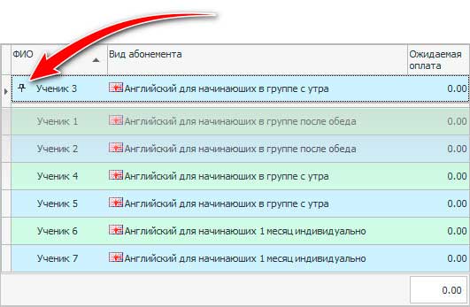 Ученик купил курс и планирует обучение только в следующем месяце? Зафиксируйте его строку сверху. Так вы точно не забудете напомнить ему о предстоящем занятии.