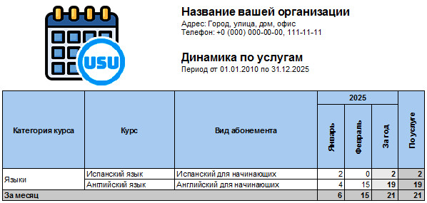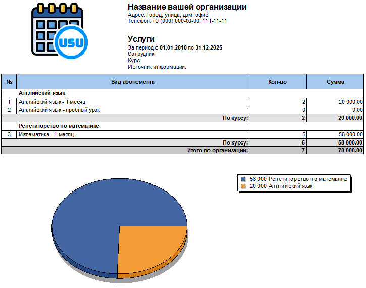 С помощью данного отчета можно отследить, какие из услуг наиболее востребованные в вашем учебном центре, а от каких стоит отказаться и заменить их на более популярные.